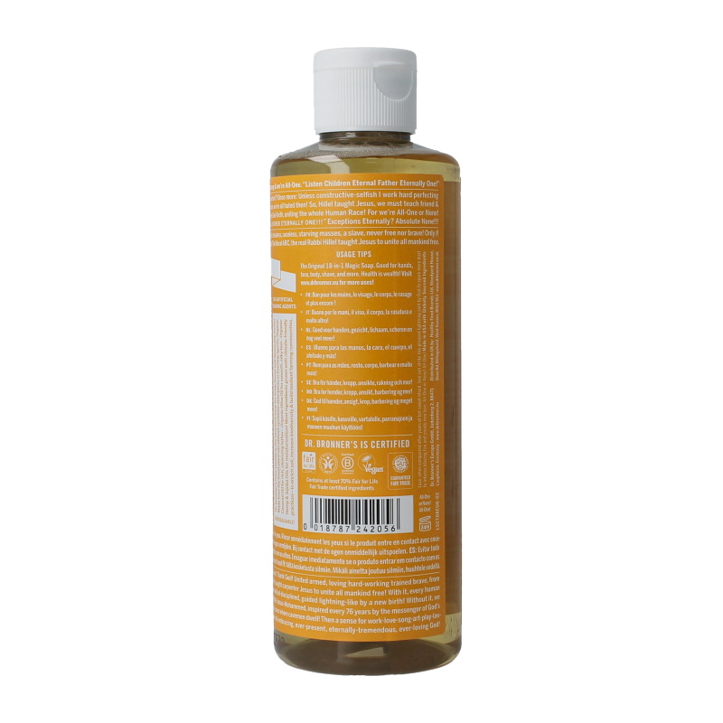 Aqua, Potassium cocoate (Saponified coconut oil*), Potassium palm kernelate (saponified palm kernel oil*), POtassium olivate (Saponified olive oil*), Glycerin, Citrus aurantium dulcis (orange) peel oi*, POtassium hempate (saponified hemp oil*), POtassium jojobate (saponified jojoba oil*), Citrus limon (lemon) peel oil, Citrus aurantifolia (lime) oil*, Citric acid, Tocopherol (vitamin E), Citral, Limonene, Linalool.