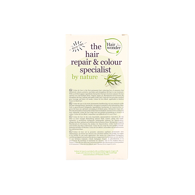 Hairwonder Colour & Care kleurt, beschermt, verzorgt en versterkt het haar in één behandeling. Nog nooit was een langdurig houdbare haarkleuring zonder ammonia verrijkt met zoveel goeds uit de natuur.