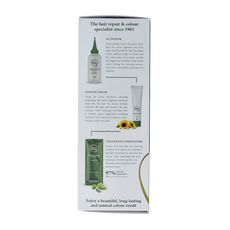 Hairwonder Long Lasting Colour biedt een duurzaam, intensief, glanzend kleurresultaat met 100% grijsdekking en optimale verzorging en bescherming van het haar. Houdt tot 3 maanden.