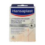 Hansaplast Littekenvervager is een transparante, zelfklevende patch, gemaakt van polyurethaan. Producten die gemaakt zijn van dit materiaal worden al jaren gebruikt in de professionele wondverzorging. De patches bevatten geen actieve ingrediënten (geneesmiddelen) die mogelijk bijwerkingen kunnen veroorzaken. Ze zijn een veilige en efficiënte manier om verheven en verkleurde hypetrofische en keloïde littekens effectief te verminderen.