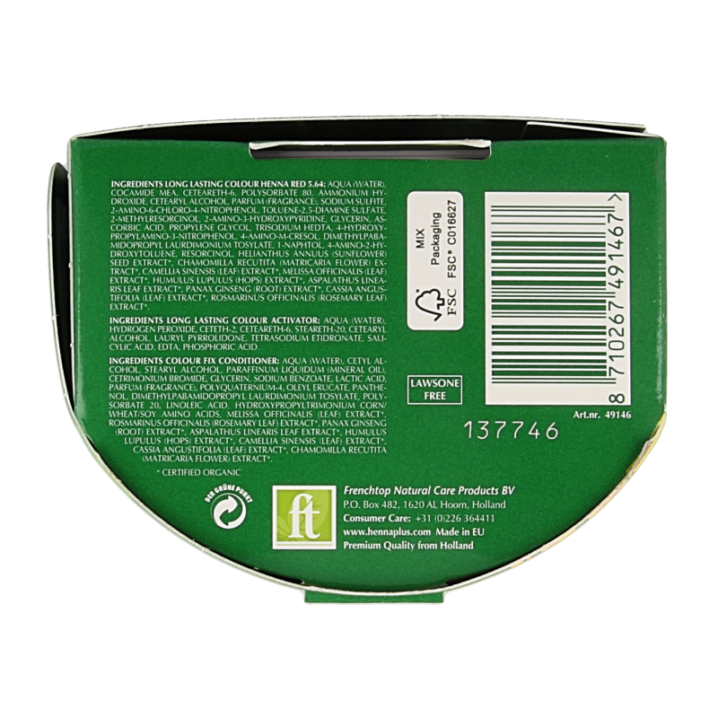 Net als alle andere Hennaplus haarkleuringen is Long Lasting Colour geformuleerd zonder toevoeging van P-Phenylenediamine (PPD). Het biedt een subtiele botanische geur die vrij is van parfum allergenen, ftalaten en muskverbindingen. Een unieke formulering welke ook vrij is van parabenen. Innovaties waarbij de focus ligt op het zoveel mogelijk reduceren van de kans op een allergische reactie tijdens het kleuren.