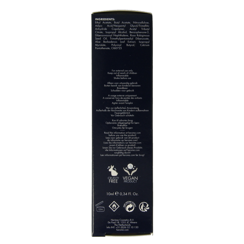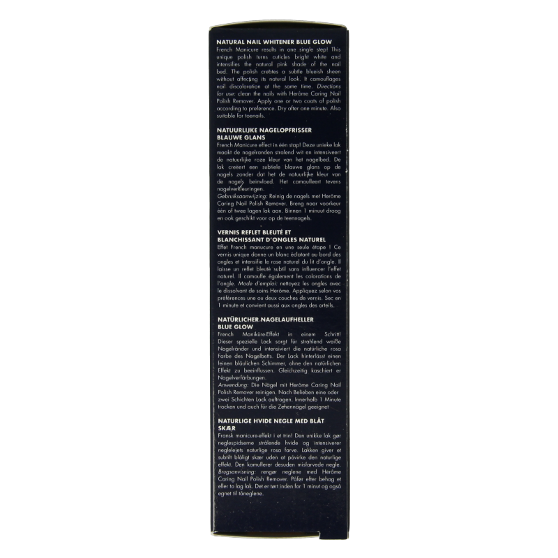 Deze lak camoufleert verkleuringen en geeft tevens een schitterend mooie glans binnen één minuut. De lak accentueert de natuurlijke roze kleur van de nagel en bovendien worden de nagelranden witter. Al binnen één minuut is de Herôme Natural Nail Whitener Blue Glow droog en zien jou nagels er perfect verzorgd uit.