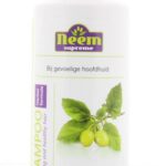 Een werkzame shampoo bereid op basis van Neem (Azadirachta indica) en andere plantenextracten, waaronder Tulsi.
