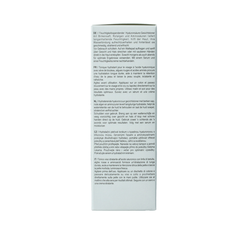 Betula Alba Juice*, Aqua, Pentylene Glycol, Glycerin, Saccharide Isomerate, Betaine, Sodium PCA, Trehalose, Canola Oil, Hydrogenated Lecithin, Opuntia Ficus-Indica Seed Oil*, Betula Alba Bark Extract*, Galactoarabinan, Calcium Ketogluconate, Sodium Hyaluronate, Hydrolyzed Hyaluronic Acid, Furcellaria Lumbricalis Extract, Sodium Benzoate, Sodium Levulinate, Parfum, Sodium Citrate, Sodium Phytate, Alcohol, Citric Acid