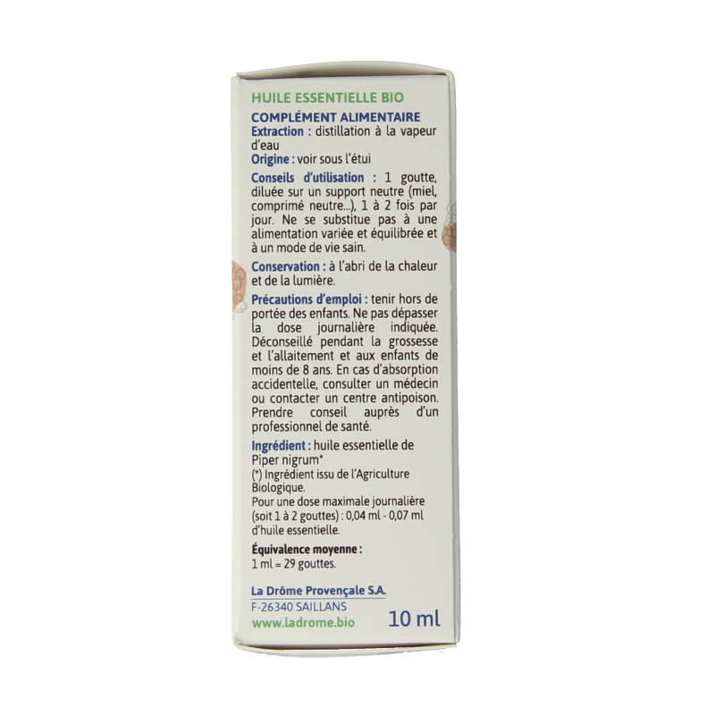 1 druppel, verdund in een koffielepel honing of plantaardige olie, 1 à 2 maal per dag.