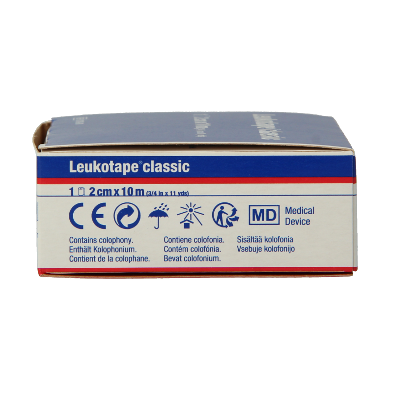 Leukotape Classic is een starre tape met hoge kleef- en trekkracht. Het is gemaakt van een rekvrij katoenweefsel. De rigiditeit van het materiaal zorgt voor een stabiliserend effect. Leukotape Classic kan ingezet worden als functioneel immobilistieverband, als sporttape voor het preventief tapen van gewrichten, banden en spieren, of ter versteviging van een compressiebandage