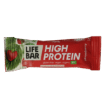 Fruit* (72 %) (dadels*, gevriesdroogde aardbeienpoeder* 2,9 %, gevriesdroogde zwartebessenpoeder*), erwtenproteïnepoeder* (16 %), AMANDELEN*,