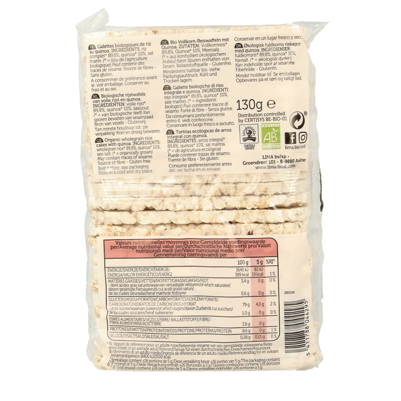 Volle rijst* 89,8%, quinoa* 10%, zeezout