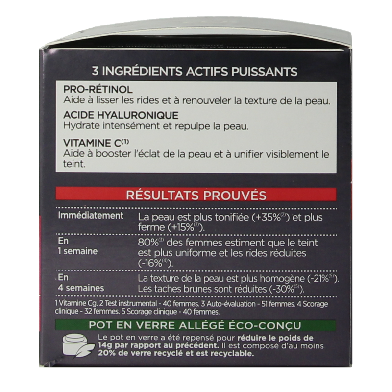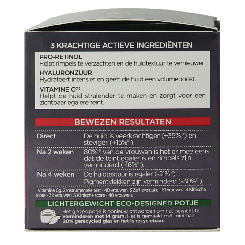Laat jouw huid weer stralen met de L”Oréal Paris Revitalift Laser X3 Anti-rimpel Dagcrème met SPF 25. Een beschermende anti-aging gezichtsverzorging voor een stevigere en vollere huid. Beschermt de huid tegen UVA-/UVB-straling. Bevat een krachtige formule met Pro-Retinol, Vitamine C en Hyaluronzuur voor een drievoudige werking tegen huidveroudering. Beschermt de huid, vermindert rimpels, maakt de huid volumineuzer en verlicht pigmentvlekjes.