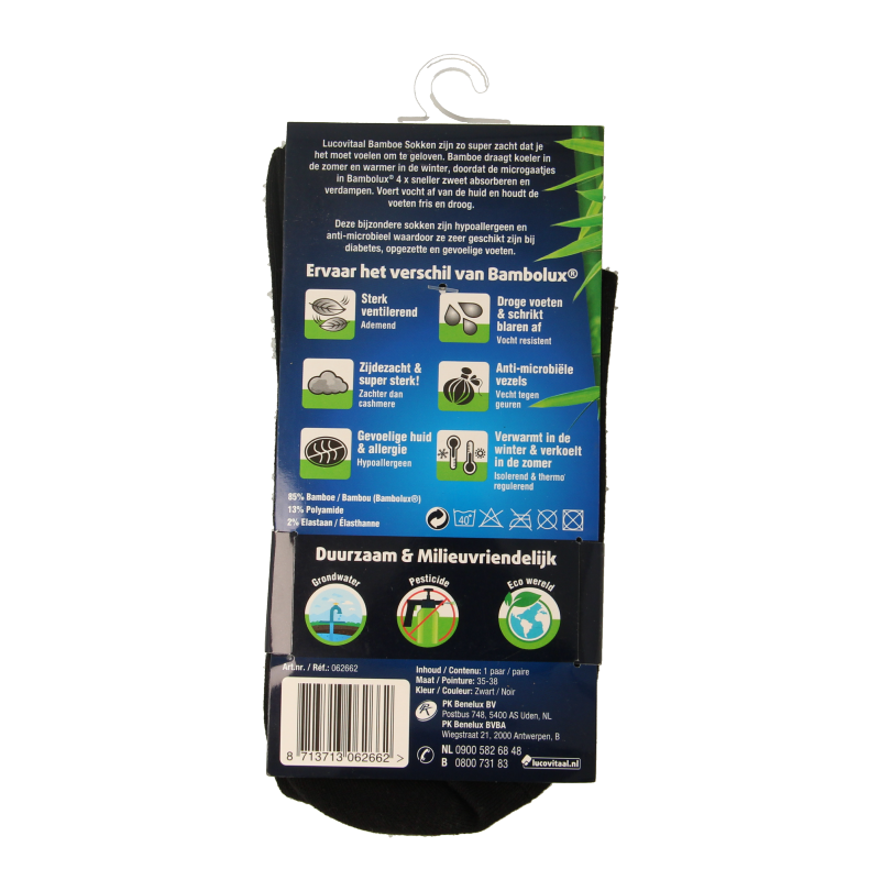 Lucovitaal Bamboe sokken zijn zo super zacht dat je het moet voelen om te geloven. Bamboe draagt koeler in de zomer en warmer in de winter, doordat de microgaatjes in Bambolux® 4x sneller zweet absorberen en verdampen.