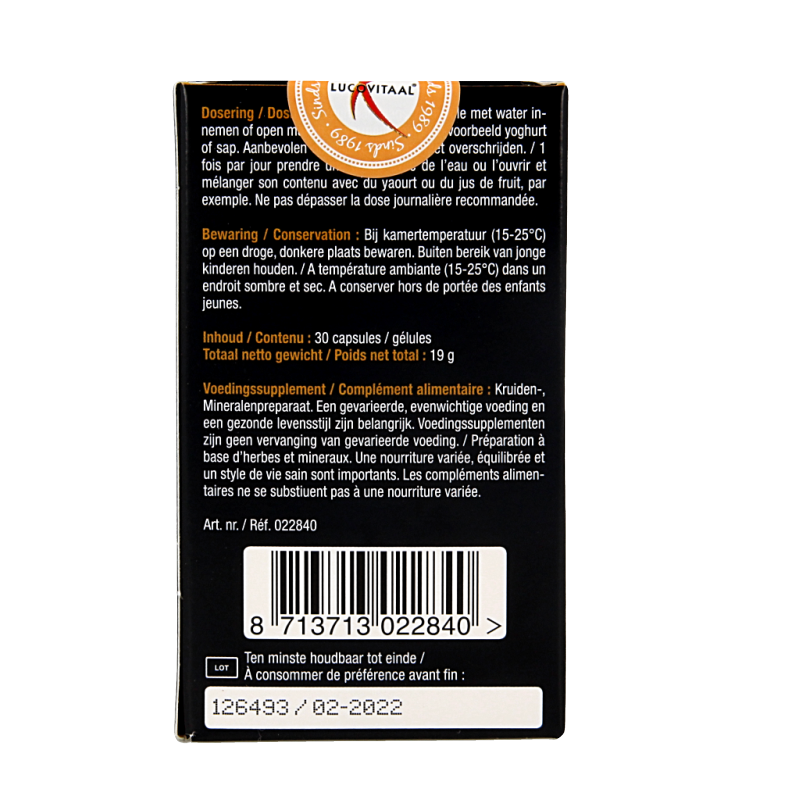 Een gevarieerde, evenwichtige voeding en een gezonde levensstijl zijn belangrijk. Een voedingssupplement is geen vervanging van een gevarieerde voeding.