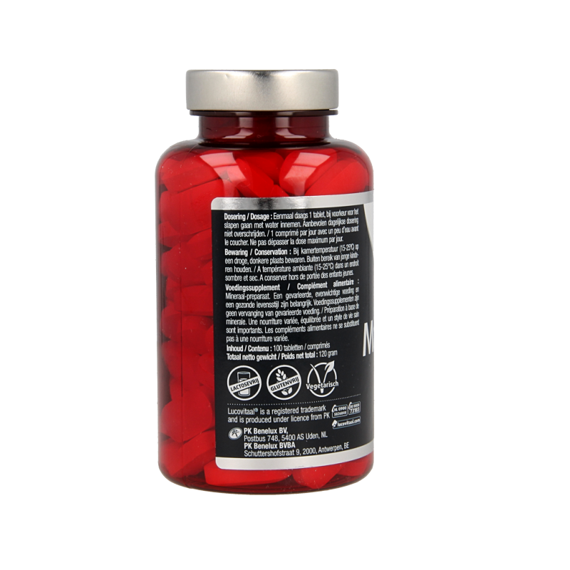 | Magnesium (Magnesiumoxide en Magnesiumcitraat) | 300 mg | 80 |