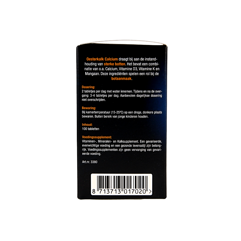 – Oesterkalk calcium draagt bij aan de instandhouding van sterke botten.