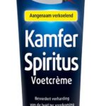 Kamferspiritus is een oplossing van 10% kamfer in alcohol (ook wel spiritus genoemd). Het is een ouderwets middel dat gebruikt wordt om de verharding van de huid van de voeten te bevorderen en zo blaarvorming te voorkomen. Deze Kamferspiritus Voetcrème heeft een aangenaam verkoelend effect en kan dus ook perfect gebruikt worden bij pijnlijke, jeukende en rode tenen of voeten. Aan de Voetcrème is Glycerine toegevoegd om de huid soepel te houden en daardoor het breken en scheuren van de huid te voorkomen. Deze crème is een absolute musthave voor fanatieke wandelaars en hardlopers!