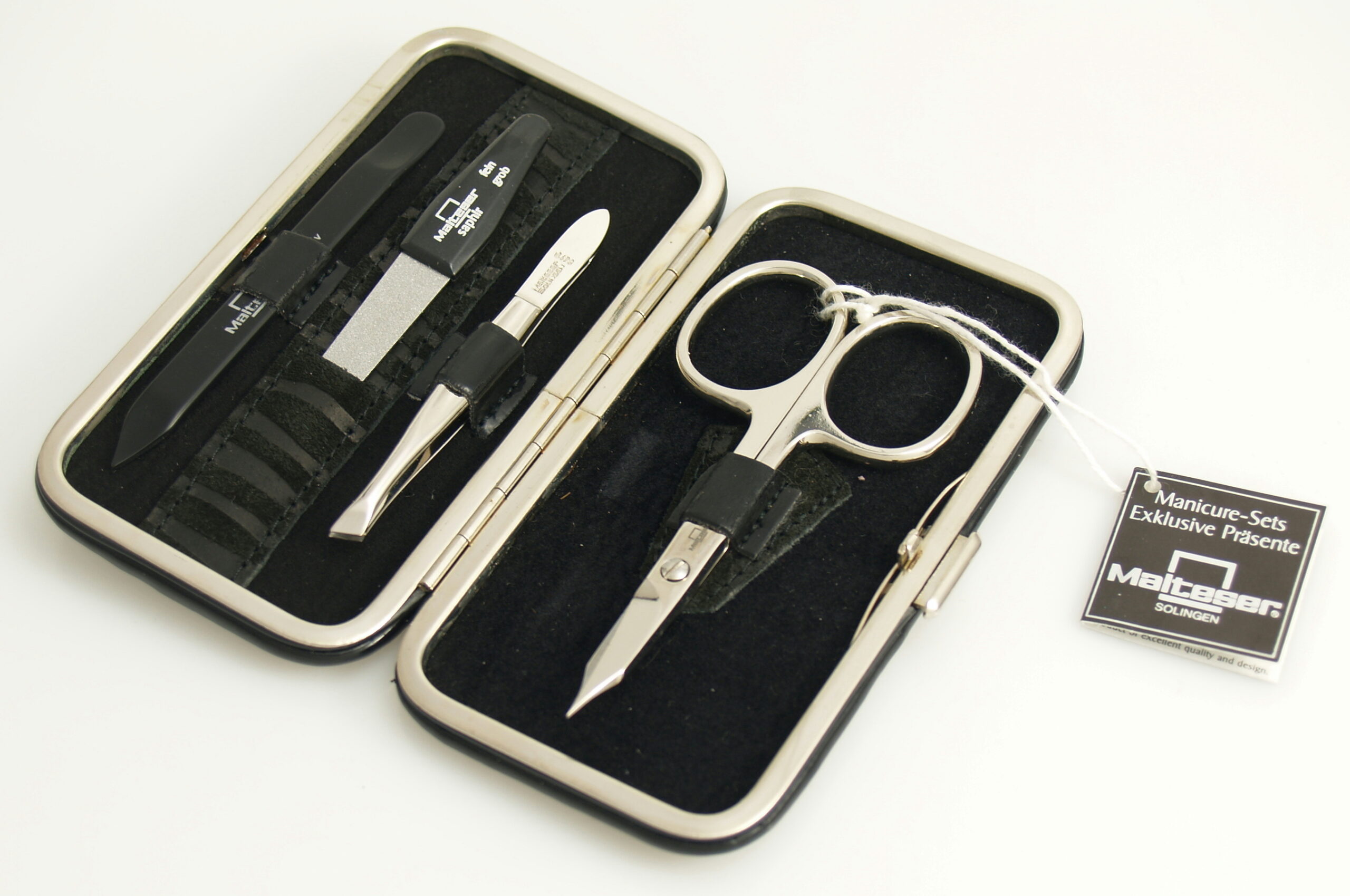 Malteser Manicure-etui 4-delig zwart lak- en fluweelleer