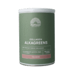Collagen AlkaGreens poeder is samengesteld uit o.a. Peptan® Fish Collagen peptides, Kiemgrassen die Chlorofyl bevatten, Vezelrijk Groenten- en Fruit (VitaVeggieTM), hoog ORAC Bessencomplex (VitaberryTM), Kruiden, Enzymen en Prebiotische Vezels.