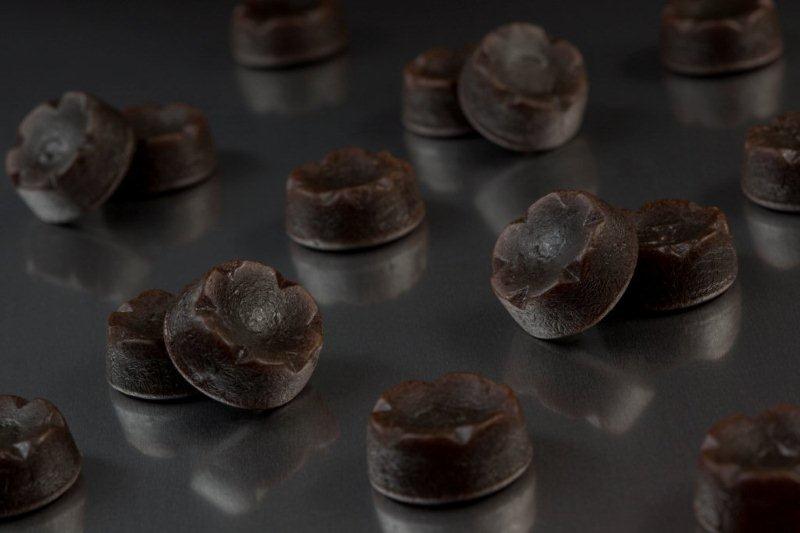 Suiker, Glucosestroop, Gemodificeerd aardappelzetmeel, Rietsuikermelasse, Gemodificeerd TARWEzetmeel, Zoethoutwortelextract, 1,6% kruidenextract, Salmiakzout, Plantaardige olie (Kokosnoot), Glansmiddel: Bijenwas