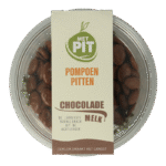 Melk chocolade (suiker, cacaoboter, volle MELKpoeder, cacaomassa, weipoeder, MELKsuiker, emulgator: SOJAlecithine), Pompoenpitten, Glansmiddel: Arabische gom