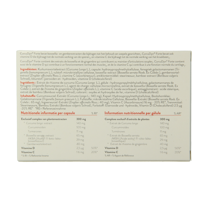– Curcudyn bevat een kurkuma, boswellia en gemberextracten voor het behoud van soepele gewrichten*