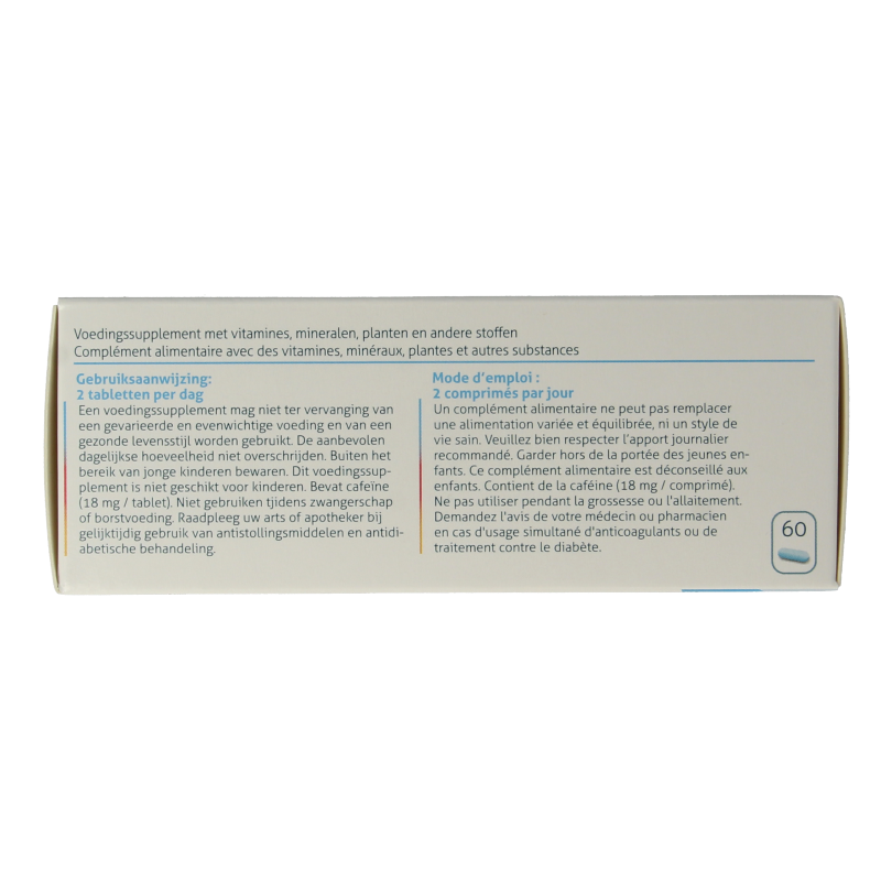 Een gevarieerde, evenwichtige voeding en een gezonde levensstijl zijn belangrijk. Een voedingssupplement is geen vervanging van een gevarieerde voeding.