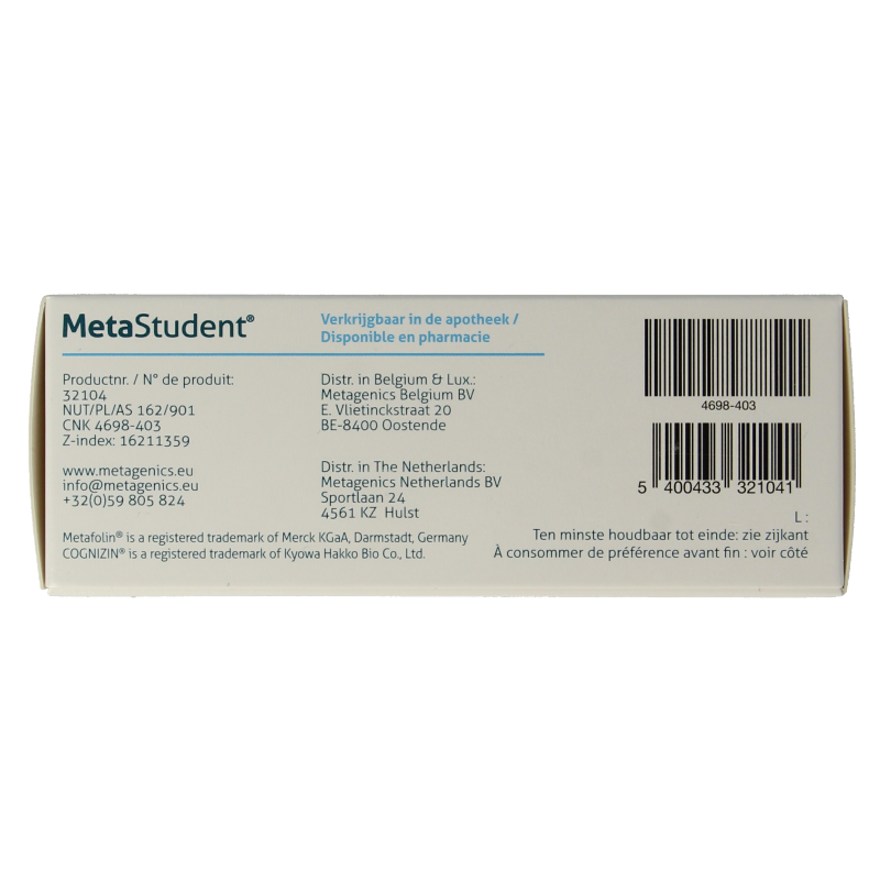 | Folaat (Metafolin®) | 100 mcg | 50% |