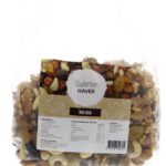 Bruine AMANDELEN (noten), CASHEWNOTEN, Blauwe jumbo rozijnen, Cranberries, Appelsap, WALNOTEN, Bruine HAZELNOTEN, Plantaardige zonnebloemolie.