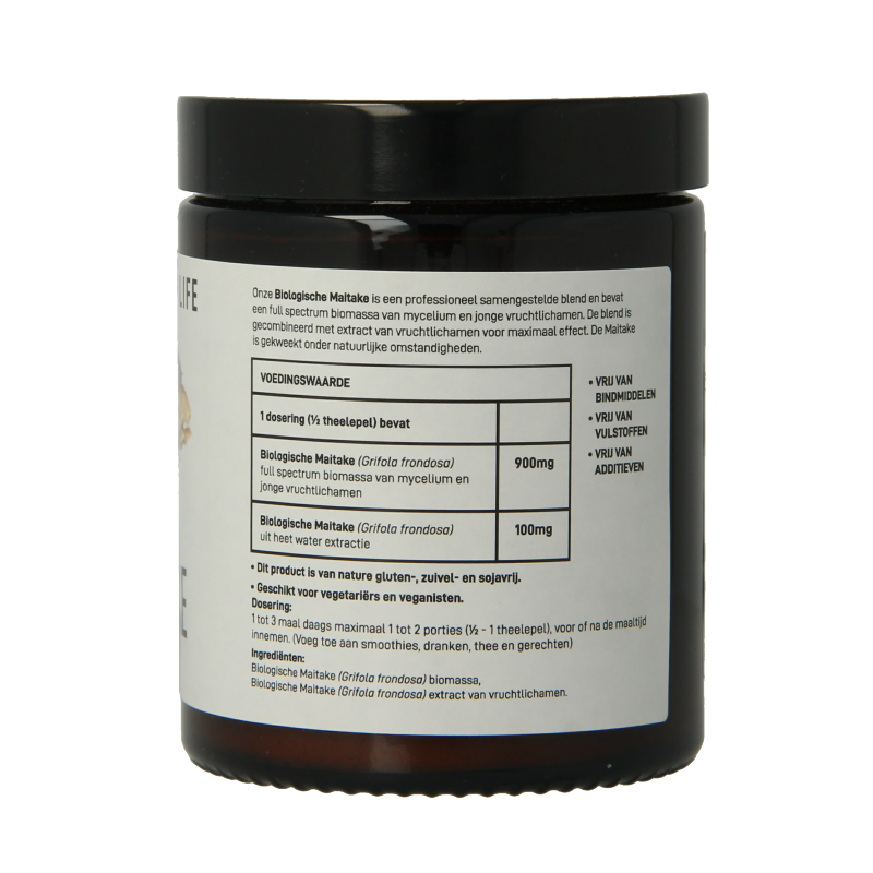| Biologische Maitake (Grifola frondosa) full spectrum biomassa van mycelium en jonge vruchtlichamen | 900mg |