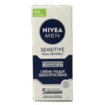 NIVEA MEN Sensitive Gezichtscrème 75ml voedt de huid intensief zonder restjes achter te laten. Het verzacht de huid en helpt huidirritaties te voorkomen dankzij de combinatie van Kamille en Hamamelis. De lichte crème formule met 0% alcohol geeft geen branderig gevoel en trekt snel in. Geeft de gevoelige huid een comfortabel en relaxed gevoel en laat de huid er gezond uitzien.