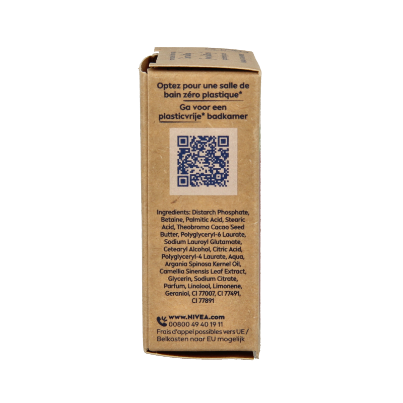 Distarch phosphate, Betaine, Palmitic acid, Stearic acid, Theobroma acacao seed butter, Polyglyceryl-6 laurate, Sodium lauroyl glutamate, Cetearyl alcohol, Citric acid, Polyglyceryl-4 laurate, Aqua, Argania spinosa kernel oil, Camellia sinensis leaf extract, Glycerin, Sodium citrate, Parfum, Linalool, Limonene, Geraniol, CI 77007, CI 77491, CI 77891