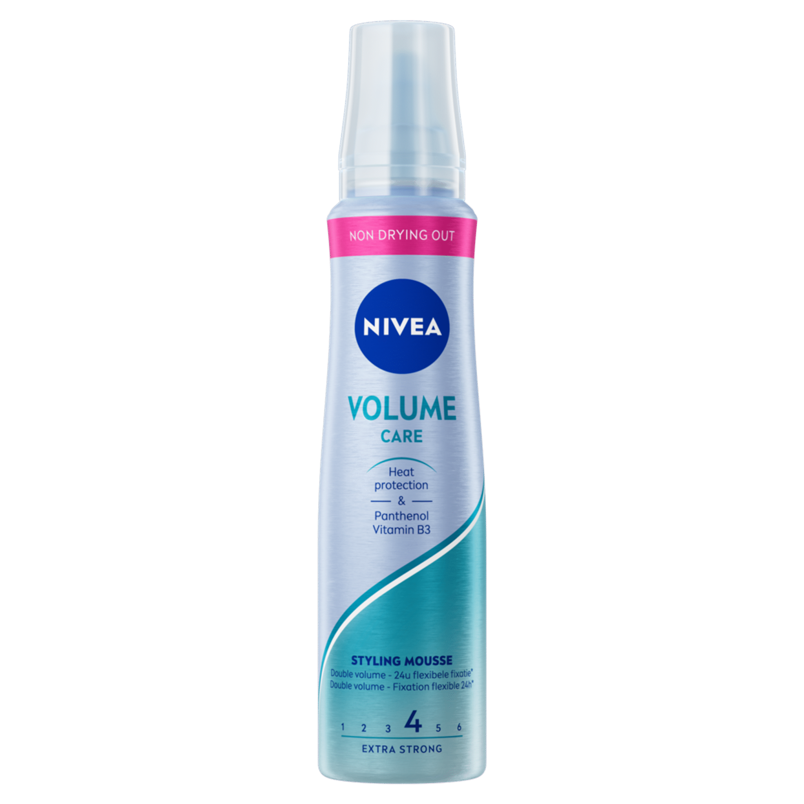NIVEA Volume Care Styling Mousse zorgt voor sensationeel volume en flexibele fixatie. Voor extra volume van het haar, van de wortel tot de punten terwijl het natuurlijk zacht blijft aanvoelen. De innovatieve formule met Panthenol en Vitamine B3 versterkt en beschermt het haar. Droogt niet uit – voor mooi gestyled haar.