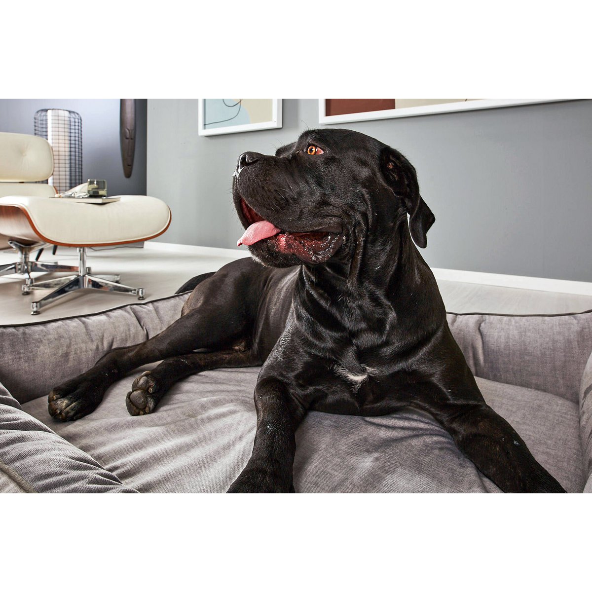 Het fluweelzachte GLAM hondenbed staat met zijn matte glans en licht gestructureerd oppervlak voor eenvoudige elegantie. Het elegante kleurenspel maakt GLAM tot een glamoureuze blikvanger, omdat het materiaal afhankelijk van de lichtinval lichter of donkerder lijkt. De elegante bies maakt het ontwerp compleet. Dankzij een speciale productietechniek is het luxe bekledingsmateriaal zeer zacht en strak geweven. De innovatieve OrthoMattress van speciaal schuim garandeert een gezond slaapcomfort en biedt veel voordelen ten opzichte van conventionele orthopedische matrassen van viscoschuim. Of het nu gaat om preventieve zorg bij jonge honden of om verlichting te bieden bij oudere honden – de LABONI OrthoMattress is ideaal voor het voorkomen van gewrichtsproblemen en verdere schade bij de diagnose artrose, heupgewrichtsdysplasie (HD), elleboogdysplasie (ED) of klachten veroorzaakt door slijtage en scheur in de wervelkolom (spondylose). Maar ook iedere gezonde hond waardeert het comfortabele ligcomfort.