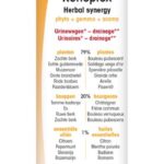 Hydroalcoholische extracten van zachte berk* (0,9 ml – 20%), echte guldenroede* (0,9 ml – 20%), muizenoor* (0,45 ml – 10%), grote brandnetel* (0,45 ml – 10%), rode bosbes* (0,45 ml – 10%) en paardenbloem* (0,405 ml – 9%), hydroalcoholische glycerine knopextracten van tamme kastanje* (0,3 ml – 6,7%), gewone es* (0,3 ml – 6,7%), ruwe berk* (0,149 ml – 3,3%) en zachte berk* (0,149 ml – 3,3%), essentiële oliën van citroen* (0,113 ml – 0,25%), pepermunt* (0,113 ml – 0,25%) steranijs* (0,113 ml – 0,25%) en rozemarijn* (0,113 ml – 0,25%).