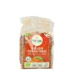 Bulgur van harde TARWE 78%, rode paprika* (stukjes en poeder), 11%, Azukiboonvlokken*, tomaat*, ui*, extra vierge olijfolie*, espelettepeper* 0,5%, basilicum*