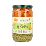 Extra fijne erwten* 38% (geteeld in Frankrijk), water, wortelschijfjes* 25% (geteeld in Frankrijk), zeezout