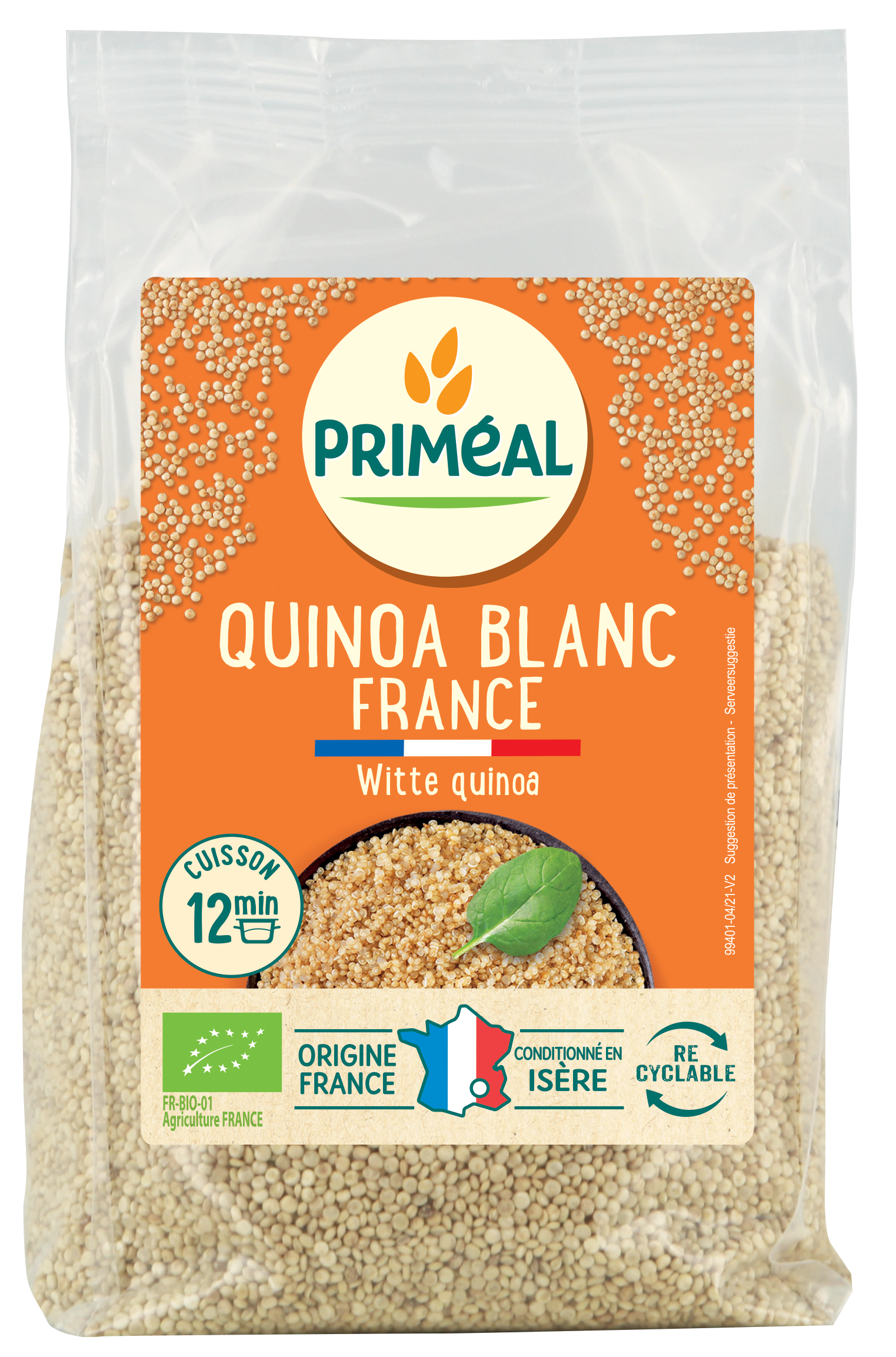 1 volume gewassen quinoa in 2 volumes water afgedekt laten koken gedurende 12-15 min.