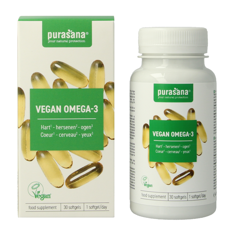 Purasana”s vegan omega-3 softgels zijn een diervriendelijke en duurzame bron van omega-3 vetzuren. Het gebruik van de algensoort Schizochytrium in plaats van vis zorgt voor een omega-3 optie vrij van de milieu-impact die traditionele visolie met zich meebrengt.