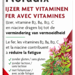 Gistextracten, rijstzetmeel, gedroogd extract (17,4 %) van: maltodextrine, spinazieblad (Spinacia oleracea), brandnetelblad (Urtica dioica), venkelvrucht (Foeniculum vulgare), wortel (Daucus carota), duizendguldenkruid (Centaurium erythraea), anti-klontermiddel: siliciumdioxide, iJzer(II)gluconaat, rozenbottelextract (4 %) (Rosa canina) (rozenbottelextract, maltodextrine), vitamine C (L ascorbinezuur), niacine (nicotinamide), vulstof: celstof, anti-klontermiddel: siliciumdioxide, coating: schellak, anti-klontermiddel: magnesiumstearaat, vitamine B6 (pyridoxinehydrochloride), vitamine B2 (riboflavine), anti-klontermiddel: talk, emulgator: polysorbate 80, vitamine B1 (thiaminehydrochloride), foliumzuur, vitamine B12 (cyanocobalamin).