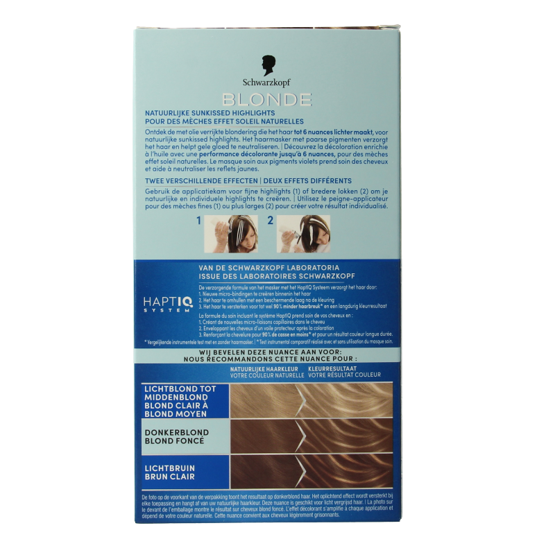 Ontdek de met olie verrijkte blondering die het haar tot 6 nuances lichter maakt, voor natuurlijke sunkissed highlights. Het haarmasker met paarse pigmenten verzorg het haar en helpt gele gloed te neutraliseren.