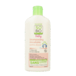 SO”BiO etic Baby Extra Gentle Shampoo reinigt het haar van baby”s haar op milde wijze en met respect voor het evenwicht van de hoofdhuid. Hypoallergeen geformuleerd dus extra mild voor de extra tere babyhuid. Het haar wordt schoon en voelt zijdezacht aan. De natuurlijke formule bevat plantaardige glycerine om het haar tegen uitdrogen te beschermen. Verrijkt met biologische aloë vera en kamille voor extra comfort. De volledige serie is hypoallergeen, extra geschikt voor de gevoelige (baby)huid en kan daarmee dus niet irriteren zoals gangbare babycare dit wel kan doen. Dankzij de 100% plantaardige flacon zorgt SO’BiO étic ervoor dat de planeet ook voor jouw kleintje behouden blijft. Dit product is vegan van samenstelling, vrij van microplastics en Cosmebio/Ecocert gecertificeerd.