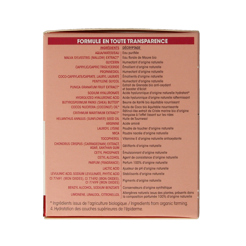De vegan geformuleerde LIFT GRENADE serie bevat een plantaardig extract van biologische zeevenkel dat fungeert als natuurlijk alternatief voor retinol. Daarmee is het een echte krachtpatser waar het op het bestrijden van vrije radicalen aankomt. Dankzij biologische granaatappel krijgt de huid aantoonbaar 10% meer glow! De dagcrème maakt de huid gladder, geeft glow en vertraagt zichtbaar huidveroudering. Dit product is 99% natuurlijk van oorsprong, vegan geformuleerd, vrij van microplastics en Cosmebio/Ecocert gecertificeerd.