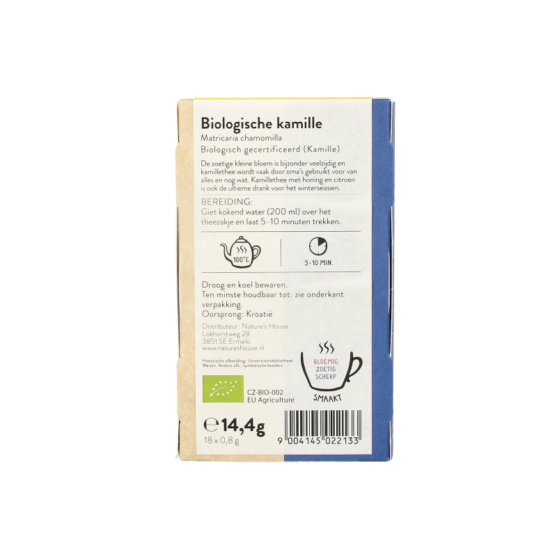 Bereiding: giet kokend water (200 ml) over het theezakje en laat 5-10 minuten trekken.