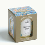100% biologische plantaardige was van soja en kokosnoot, met de hand gegoten in Frankrijk. De lont is gemaakt van 100% katoen en de verpakking is 100% recyclebaar.
