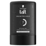 Taft Unlimited hold Styling Gel met waterbestendige technologie biedt tot 72 uur unlimited hold en plakt niet. Deze gel is gemakkelijk uit te wassen met shampoo. Deze gel is zacht voor haar en hoofdhuid en bevat hydraterende panthenol. Alle Taft formules zijn vegan* en PETA gecertificeerd**.