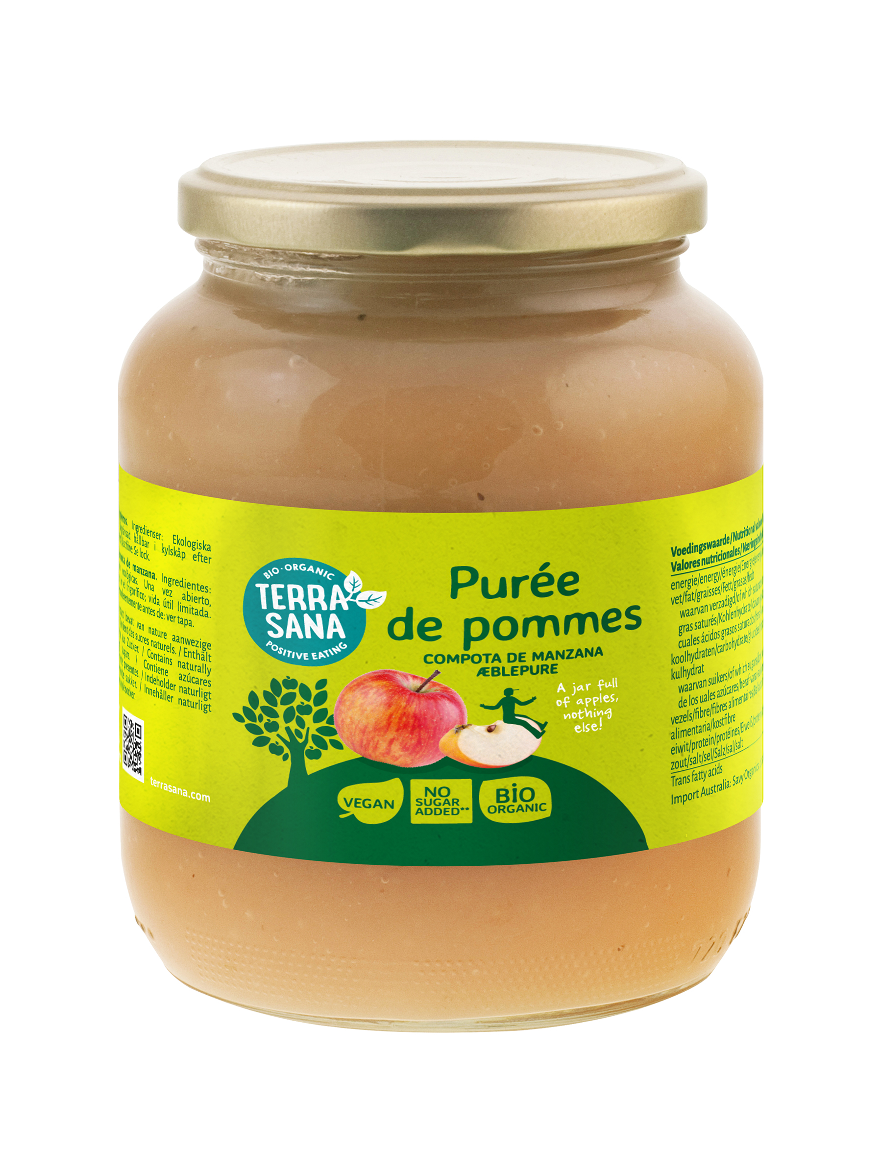 Wist je dat appelmoes in sommige gerechten ei kan vervangen? Denk aan 4 eetlepels voor 1 ei. Je koopt de appelpuree in een herbruikbare glazen pot met bpa-vrije deksels.