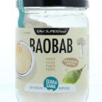 Baobabpoeder komt van de vrucht van de baobab- of apenbroodboom. Deze Afrikaanse boom kan enorme hoeveelheden water opslaan in de stam, zodat de boom in het droge seizoen in leven blijft. De baobab wordt dan ook welverdiend “boom des levens” genoemd.
