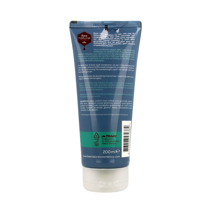 In deze hair & body wash combineren we een milde reiniging met natuurlijke actieve stoffen zoals biologische essentiële eucalyptusolie en onze honing. De geur van essentiële eucalyptusolie geeft een aangenaam verkwikkend gevoel!