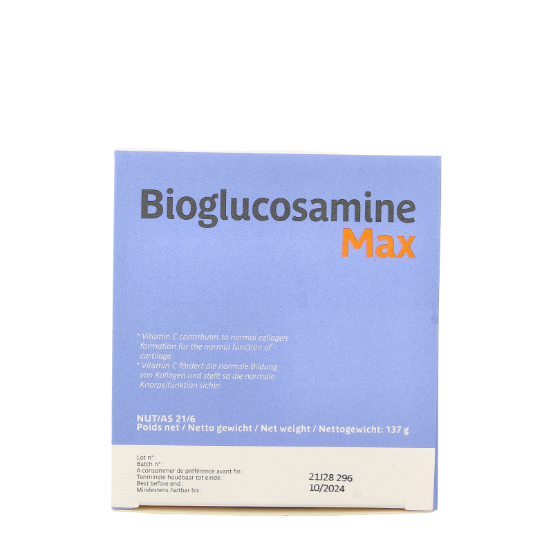 Bioglucosamine Max, aangeboden onder vorm van filmtabletten of zakjes, bevat 1500 mg D-glucosaminehydrochloride (1250 mg