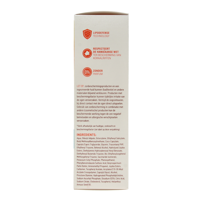 Zonbeschermingsproducten en een ingesmeerde huid kunnen (bad)textiel en andere materialen blijvend verkleuren. Producten met beschermingsfactoren kunnen tijdelijke irritatie van de ogen veroorzaken. Vermijd de oog contouren; bij direct contact met de ogen direct uitspoelen. Gebruik van zon bescherming in combinatie met andere cosmetische) producten kan de beschermende werking tegen de zon negatief beinvloeden en allergische verschijnselen veroorzaken.