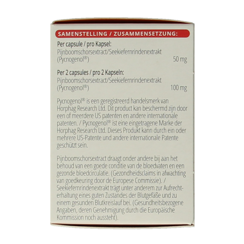 | Pycnogenol® (uit pijnboomschors, Pinus pinaster) | 100 mg |