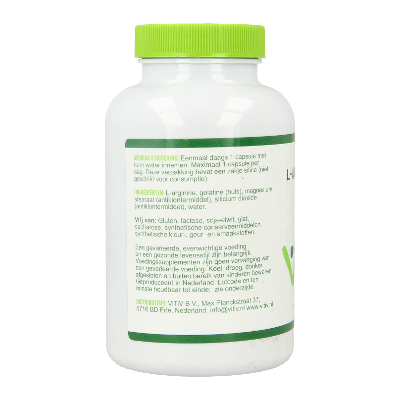 L-arginine, gelatine (huls), magnesium stearaat (anti-klontermiddel), silicium dioxide (antiklontermiddel), water.